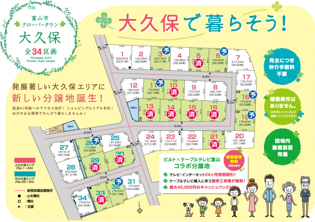 ビルト×ケーブルテレビ富山 コラボ分譲地!テレビ・インターネット24ヶ月特別割引!ケーブルテレビ導入に伴う標準工事費が無料!最大45,000円のキャッシュバック!