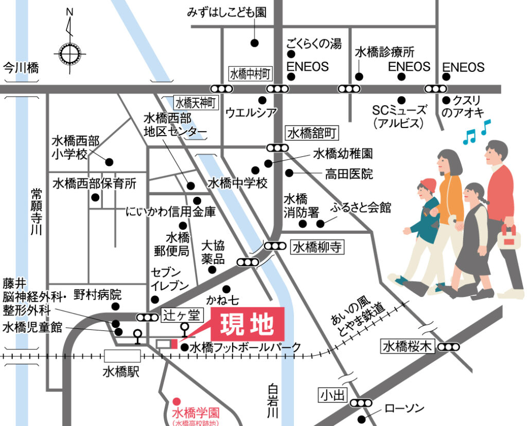 令和8年4月開校の義務教育学校「水橋学園」まで徒歩約8分!水橋駅まで徒歩約4分、あいの風とやま鉄道で富山駅まで乗車約11分!富山市街地への通勤、通学、富山駅前ショッピングにも便利です。