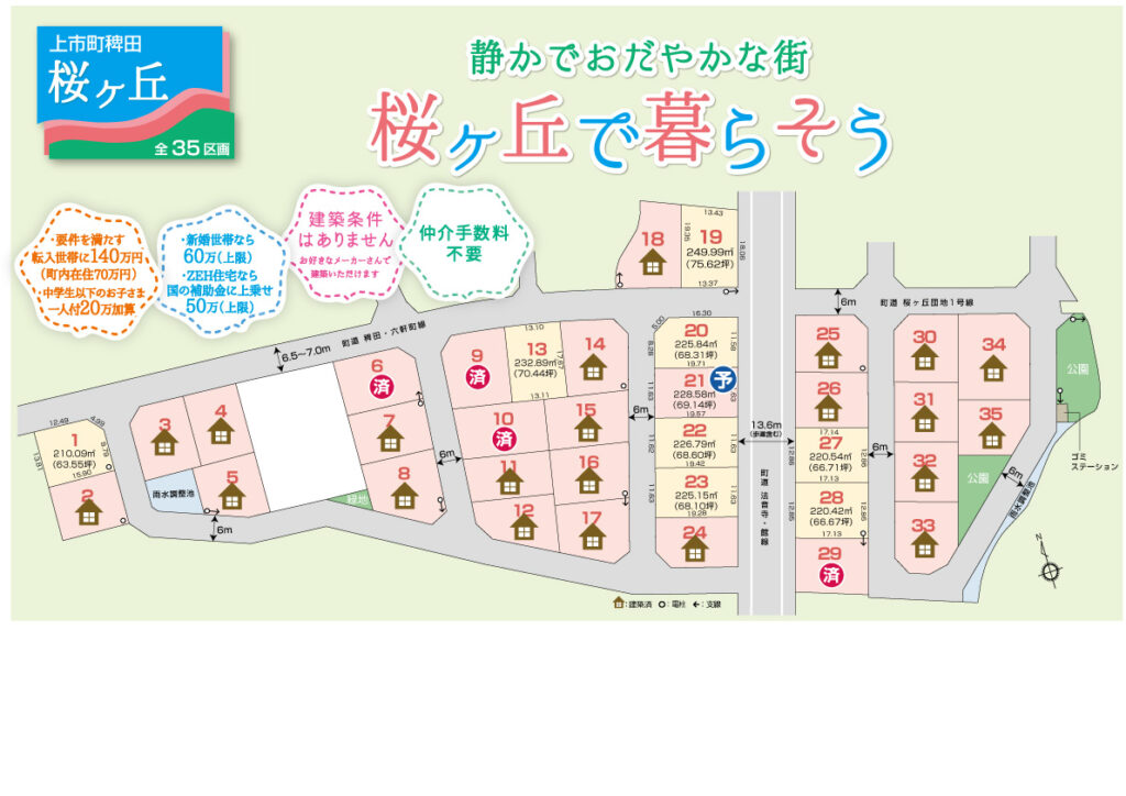 ●所在地/富山県中新川郡上市町稗田字古討免41-7外●土地開発総面積/11,324.22㎡(3,425.57坪)●総区画数/35区画●地目/宅地●用途地域/無指定●都市計画/非線引地域●建ぺい率/60%●容積率/200%●開発許可番号/富山県指令富士セ第10170号(令和2年5月25日)●道路/団地内6mアスファルト舗装(町道)●電気/北陸電力●上水道/上市町営●下水道/中新川公共下水道●ガス/個別プロパン●公園/団地内2個所●ゴミステーション/団地内1個所●消火栓/団地内2個所●ケーブルテレビ/Net3エリア内●売主/(有)フジ企画 富山県知事(8)1883号●販売提携/(株)ビルト 富山県知事(7)2271号●広告有効期限/2026年6月末日