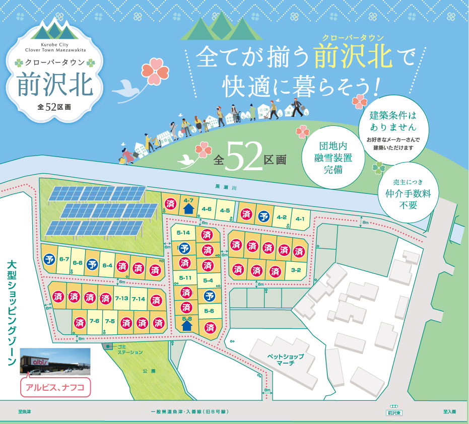 すぐお隣にアルビス、ナフコオープン!大型ショッピングゾーンに隣接する全52区画。全てが揃うクローバータウン前沢北で快適に暮らそう!小学校すぐ近く、幹線道路すぐそばで充実の交通網。暮らしやすさあふれた新しい街が誕生しました。