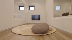 さらに、ミーティングルームからはキッズスペースの様子が見えるようになっており、お子様連れのお客様にも安心してご利用いただける設計としました。